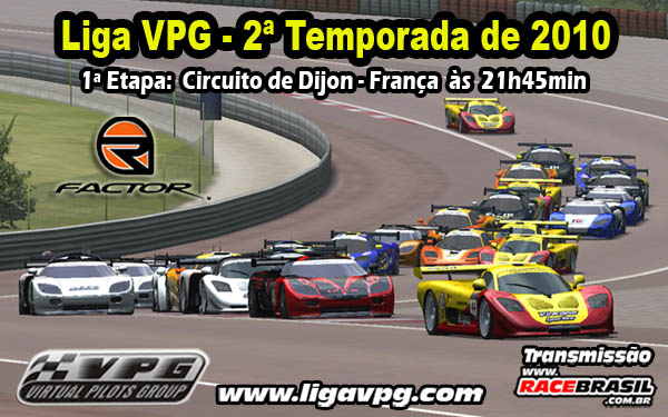 | A liga VPG, de automobilismo virtual, abre hoje, dia 17.05.2010, às 21h45min, com transmissão ao vivo, sua segunda temporada de 2010.