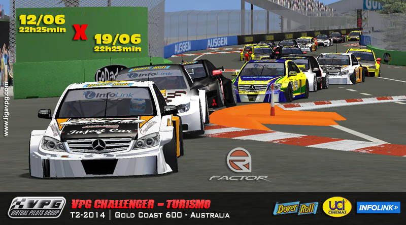 T2-2014 | Liga VPG corre pela primeira vez no novo traçado de Surfers Paradise, Gold Coast 600 Street Circuit.Prepare-se para fortes emoções, dia 09/06 será a tão esperada abertura do campeonato VPG PRO com os possantes DTM 2014. A estreia do campeonato teve que ser adiada por 15 dias devido a problemas técnicos. E nesta segunda-feira, as 22h30min direto da Austrália, com transmissão ao vivo através do Portal Extreme TV, teremos a largada deste grande evento, recheada de ação e muitas batalhas. Será uma parada dura, só os fortes sobreviverão a um dos circuitos de rua mais implacáveis do automobilismo. Confira tudo e não fique de fora. Mais Informações no nosso fórum.